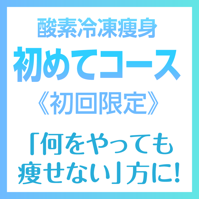 「何をやっても痩せない」方も「この疲れた身体を何とかしたい」という方も、是非一度、酸素冷凍痩身をお試し下さい。ただのお試しではない「求めていた身体の変化」にきっと気づけます。